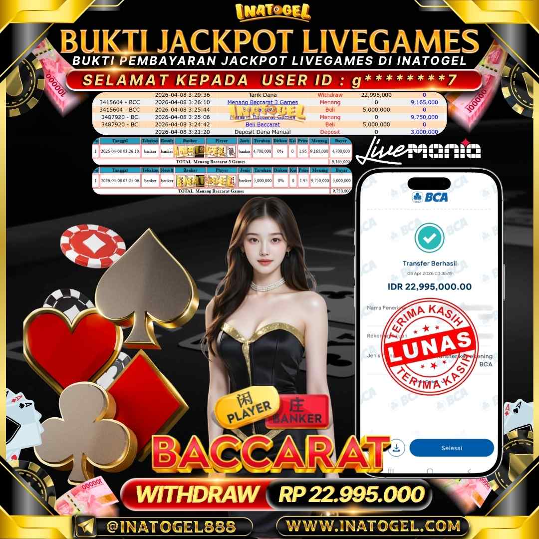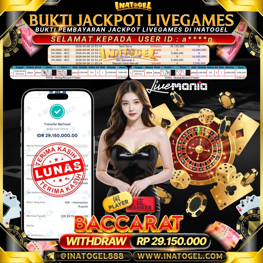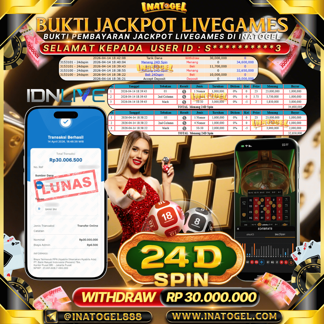 Selamat kepada User Id T******N telah berhasil mendapatkan kemenangan jackpot pada permainan Sydney Lotto sebesar Rp 21,500,000,- . Inatogel situs terpercaya sejak dulu hingga saat ini , Untuk kemenangan berapapun pasti akan kami bayarkan . Jangan ragu bermain di Ina Togel . Kami pihak Inatogel Menyampaikan terima kasih kepada seluruh member Ina Togel yang telah Percaya dan setia Bersama kami bermain di Inatogel saat ini.
