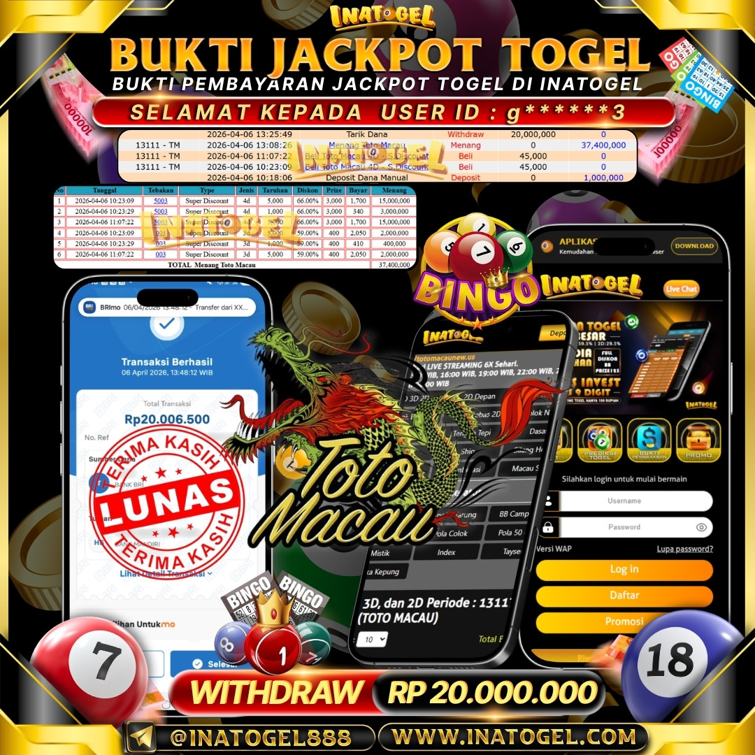 Inatogel Jackpot Togel Hongkong Lotto Rp 20,000,000