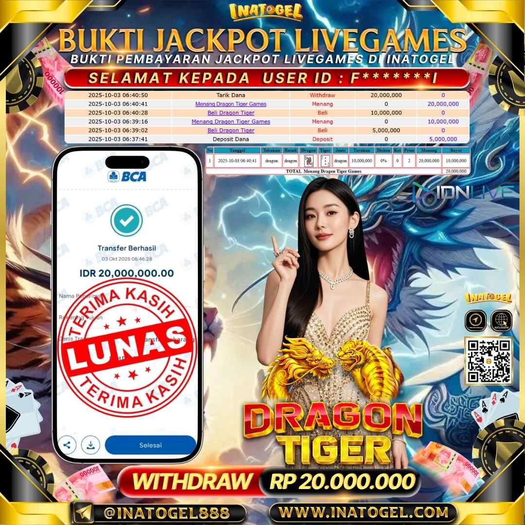 Inatogel Jackpot LiveGame Dragon Tiger Rp20,000,000