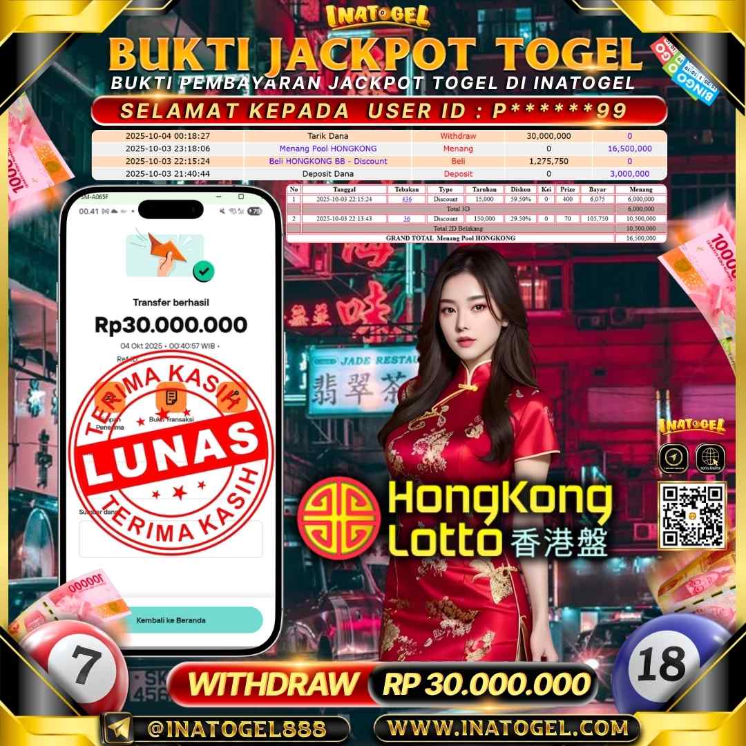 Inatogel Jackpot Togel Hongkong Lotto Rp30,000,000