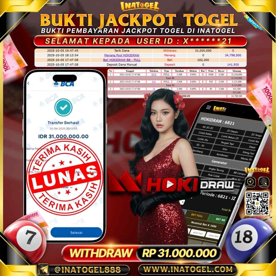 Inatogel Jackpot Togel HOKIDRAW Rp31,000,000
