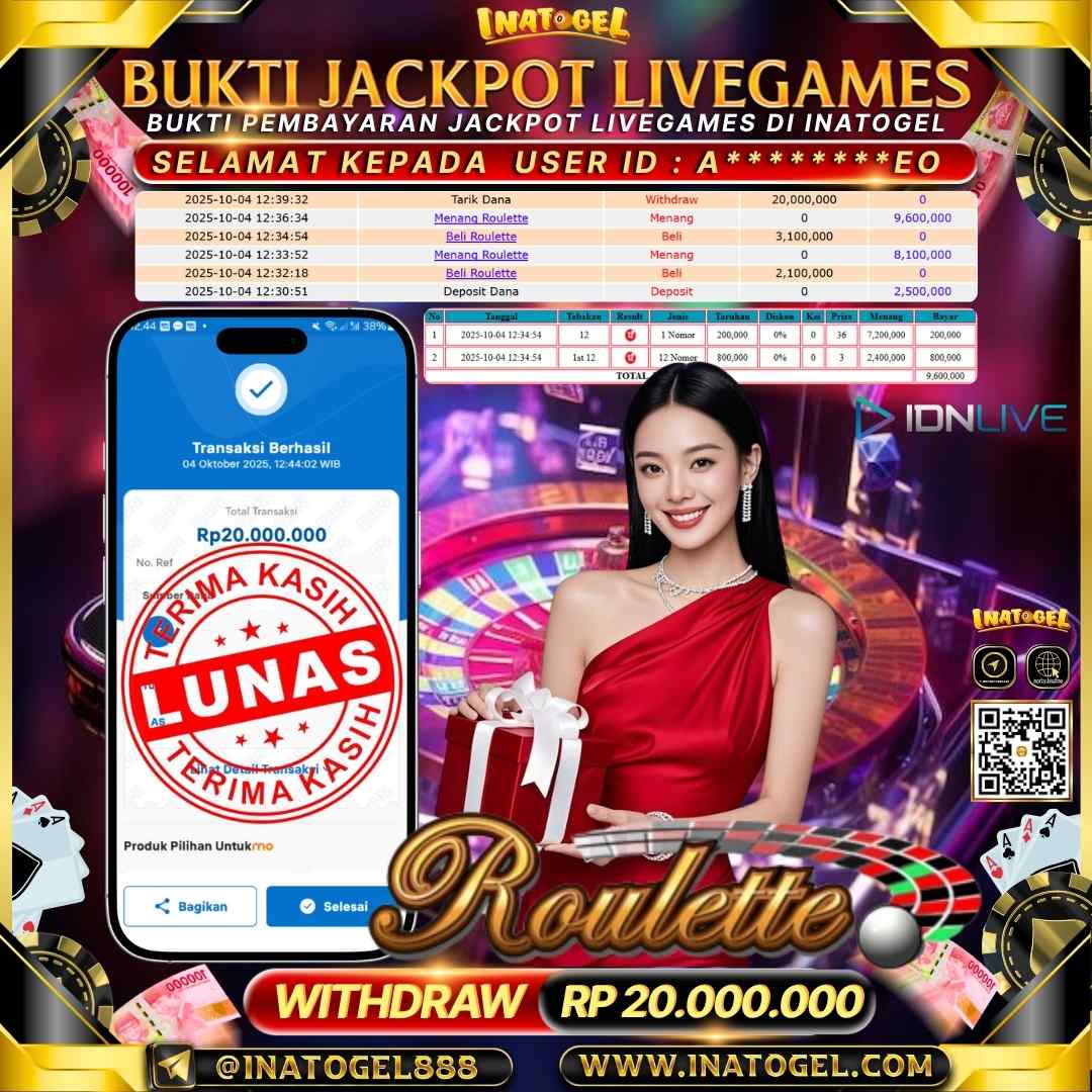 Inatogel Jackpot LiveGame Roulette Rp20,000,000