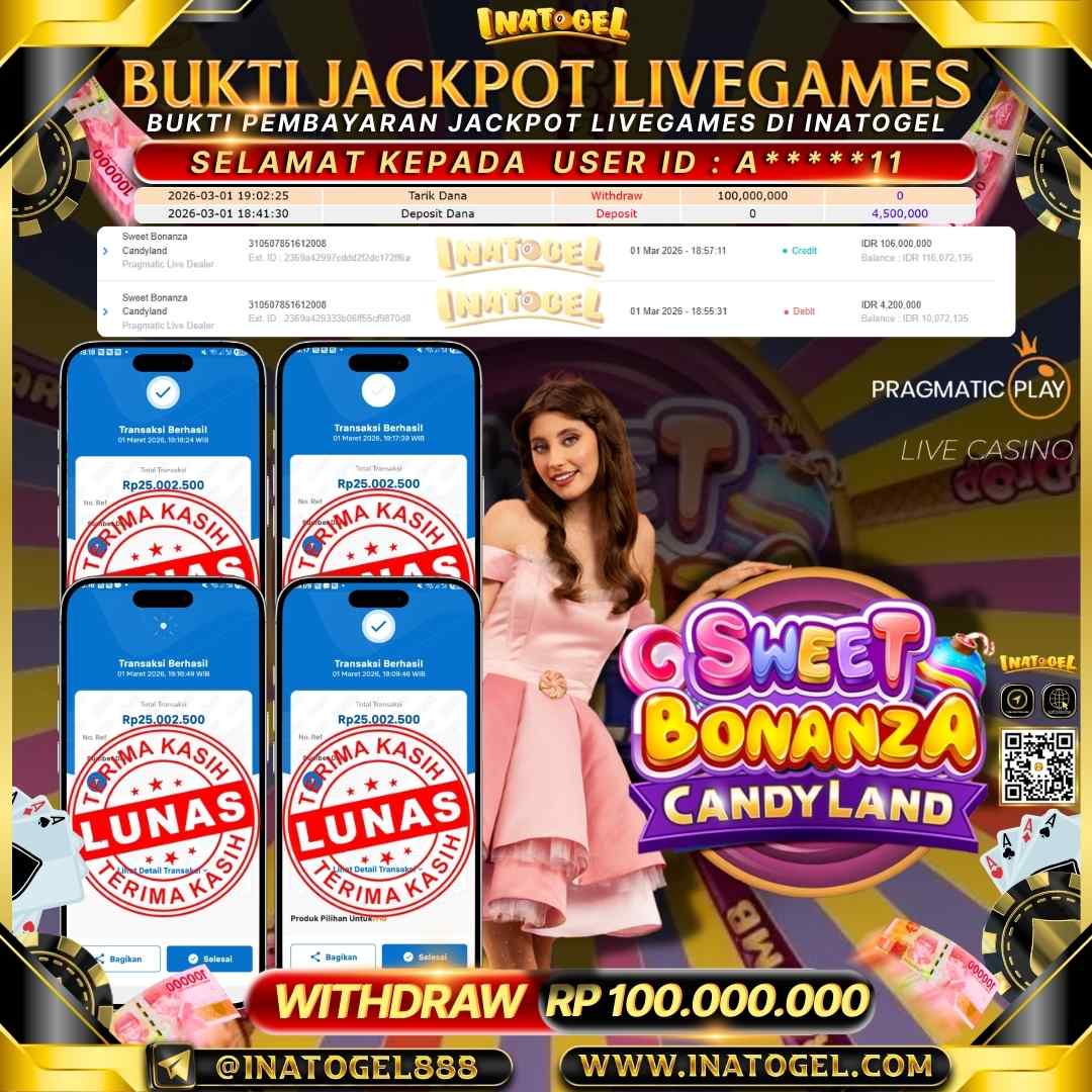 Inatogel Jackpot Live Game Sweet Bonanza Candyland Rp 100,000,000