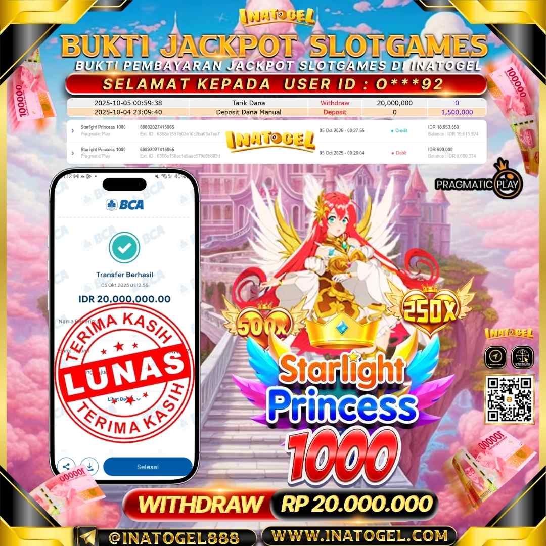 Inatogel Jackpot SlotGame Starlight Princess 1000 Rp20,000,000