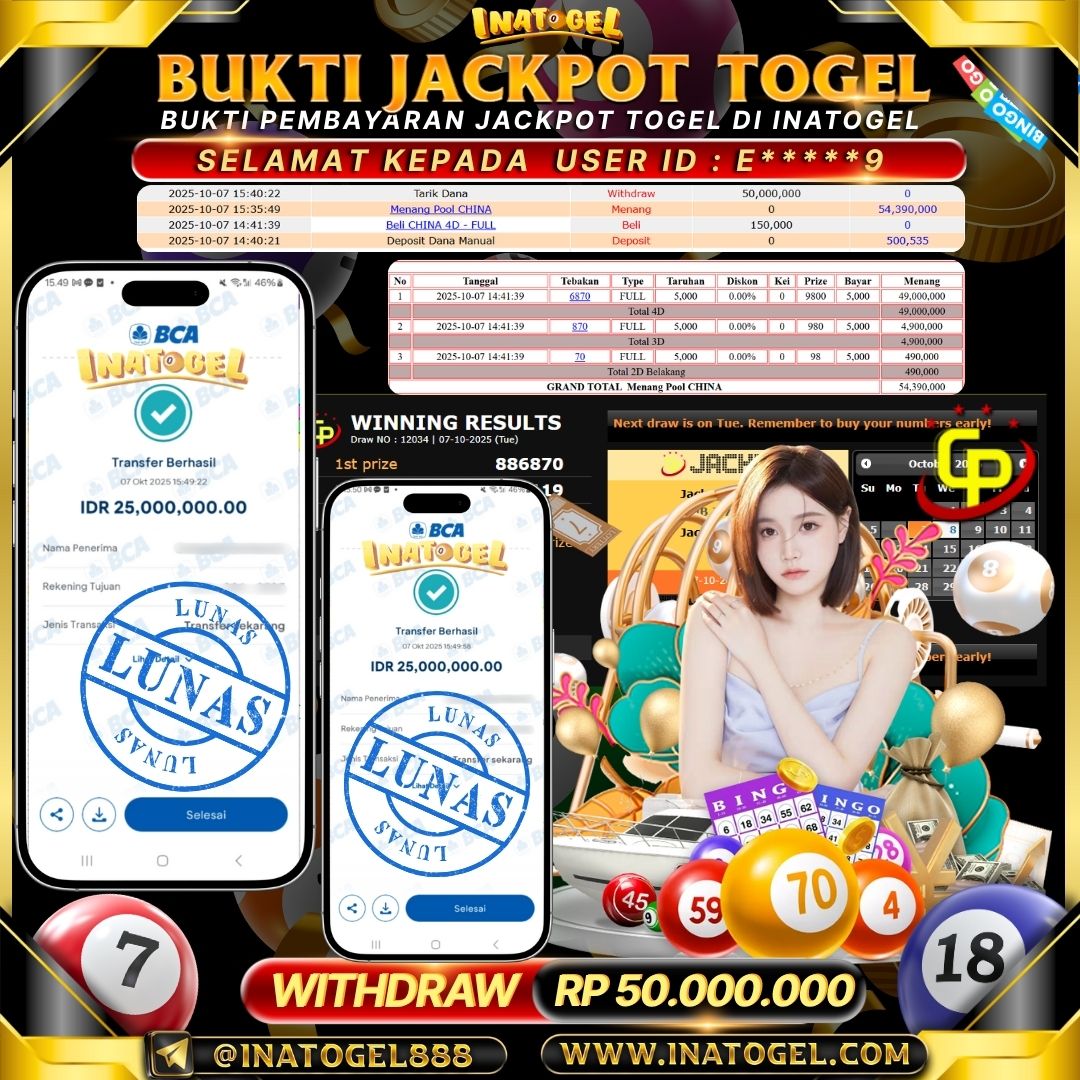 Inatogel Jackpot Togel CHINA Rp50,000,000