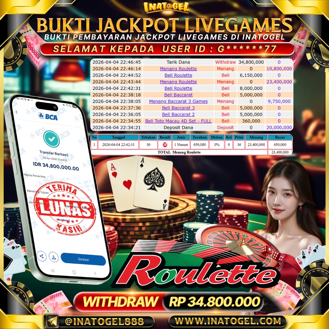 Inatogel Jackpot Live Game Roulette Rp 28,000,000