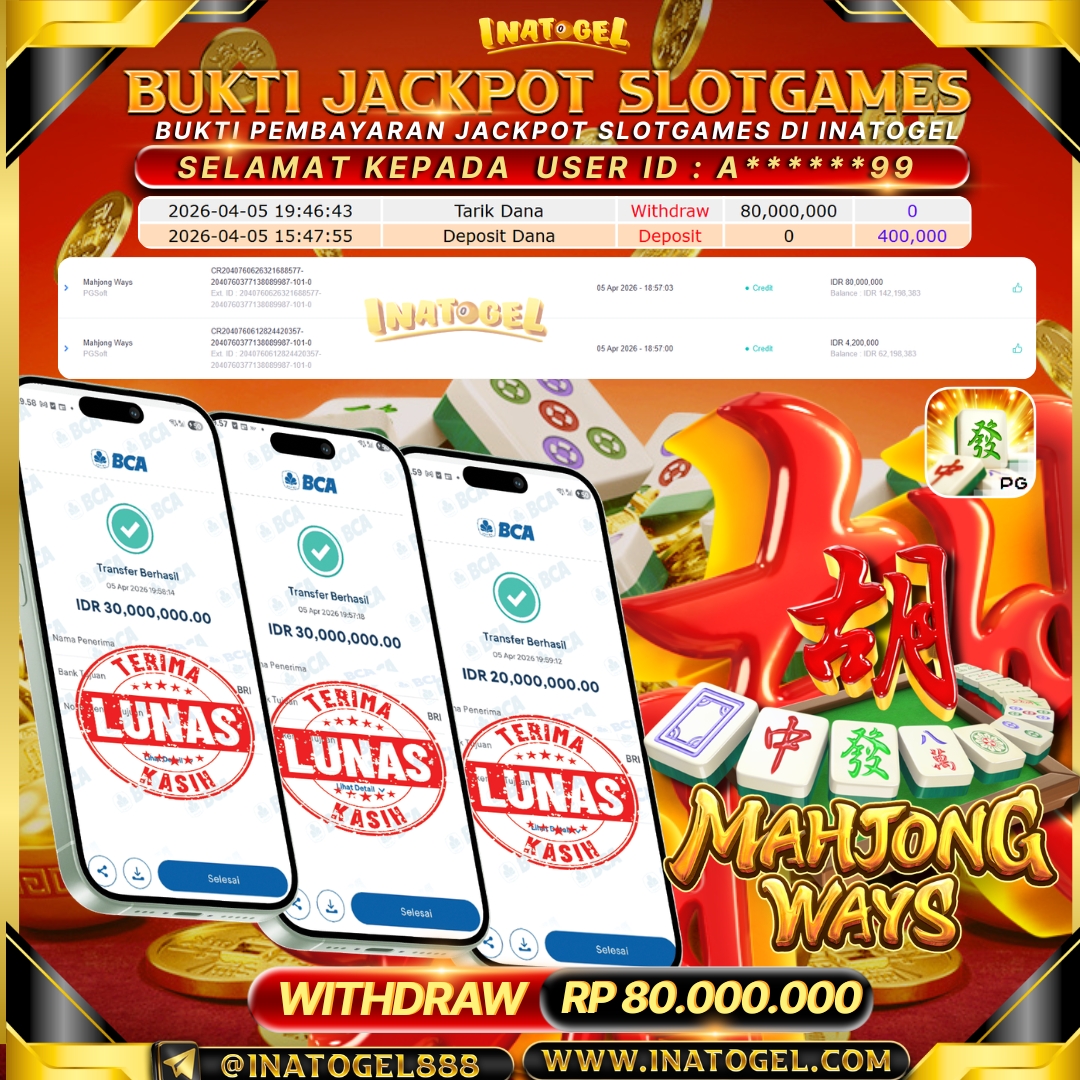 Selamat kepada User Id W*******99 telah berhasil mendapatkan kemenangan jackpot pada permainan Slot Games Mahjong Wins 2 sebesar Rp 64,000,000- . Inatogel situs terpercaya sejak dulu hingga saat ini , Untuk kemenangan berapapun pasti akan kami bayarkan . Jangan ragu bermain di Ina Togel . Kami pihak Inatogel Menyampaikan terima kasih kepada seluruh member Ina Togel yang telah Percaya dan setia Bersama kami bermain di Inatogel saat ini.