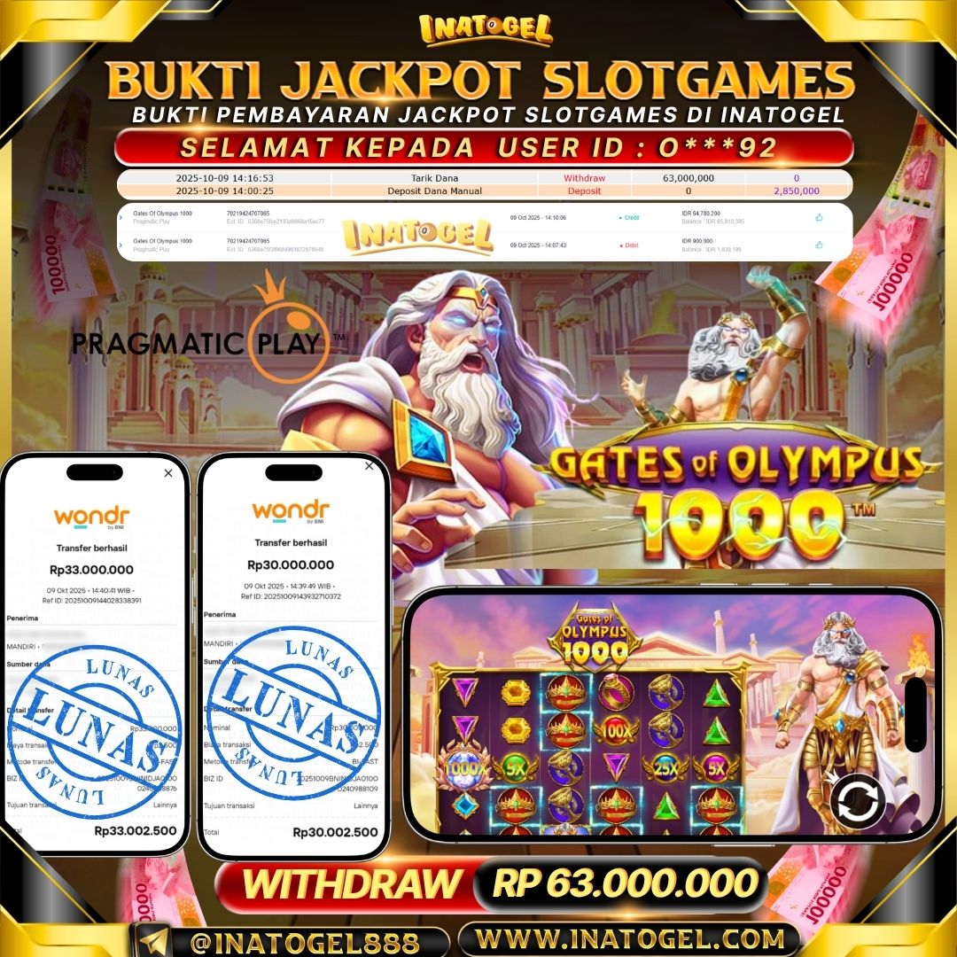 Inatogel Jackpot SlotGame Gates Of Olympus 1000 Rp63,000,000
