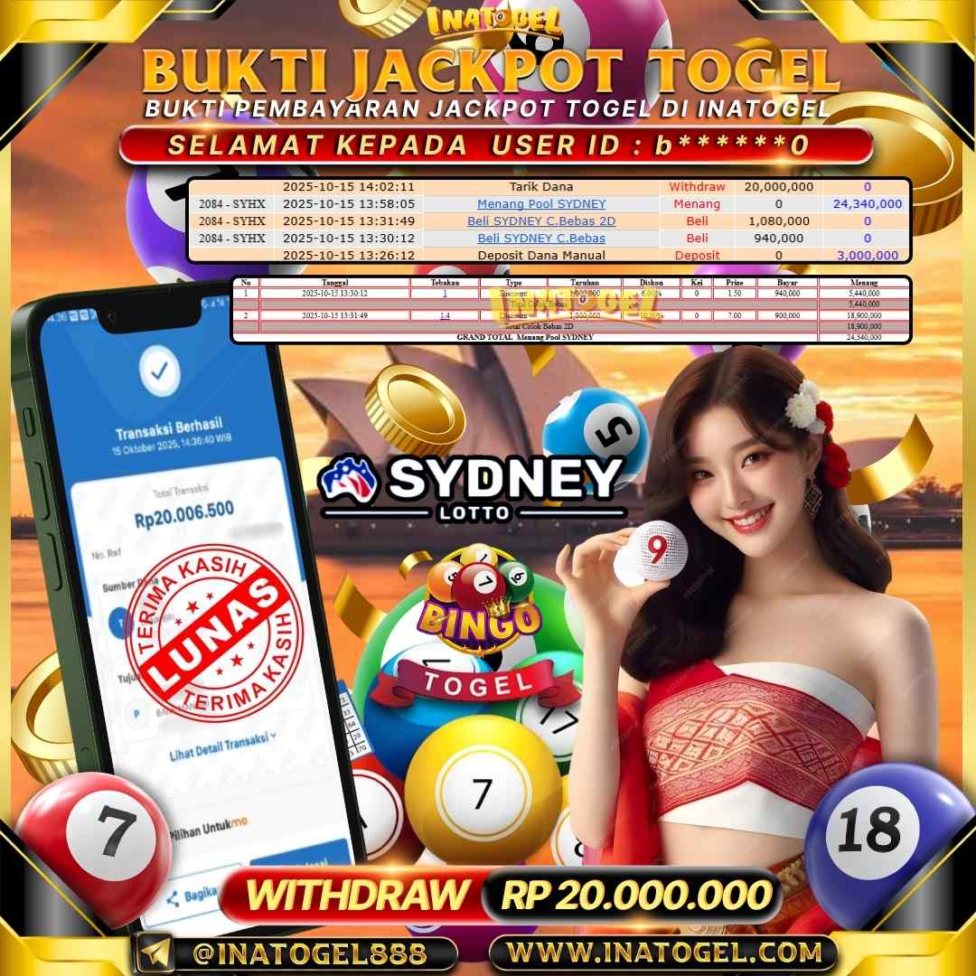 Inatogel Jackpot Togel Sydney Lotto Rp20,000,000