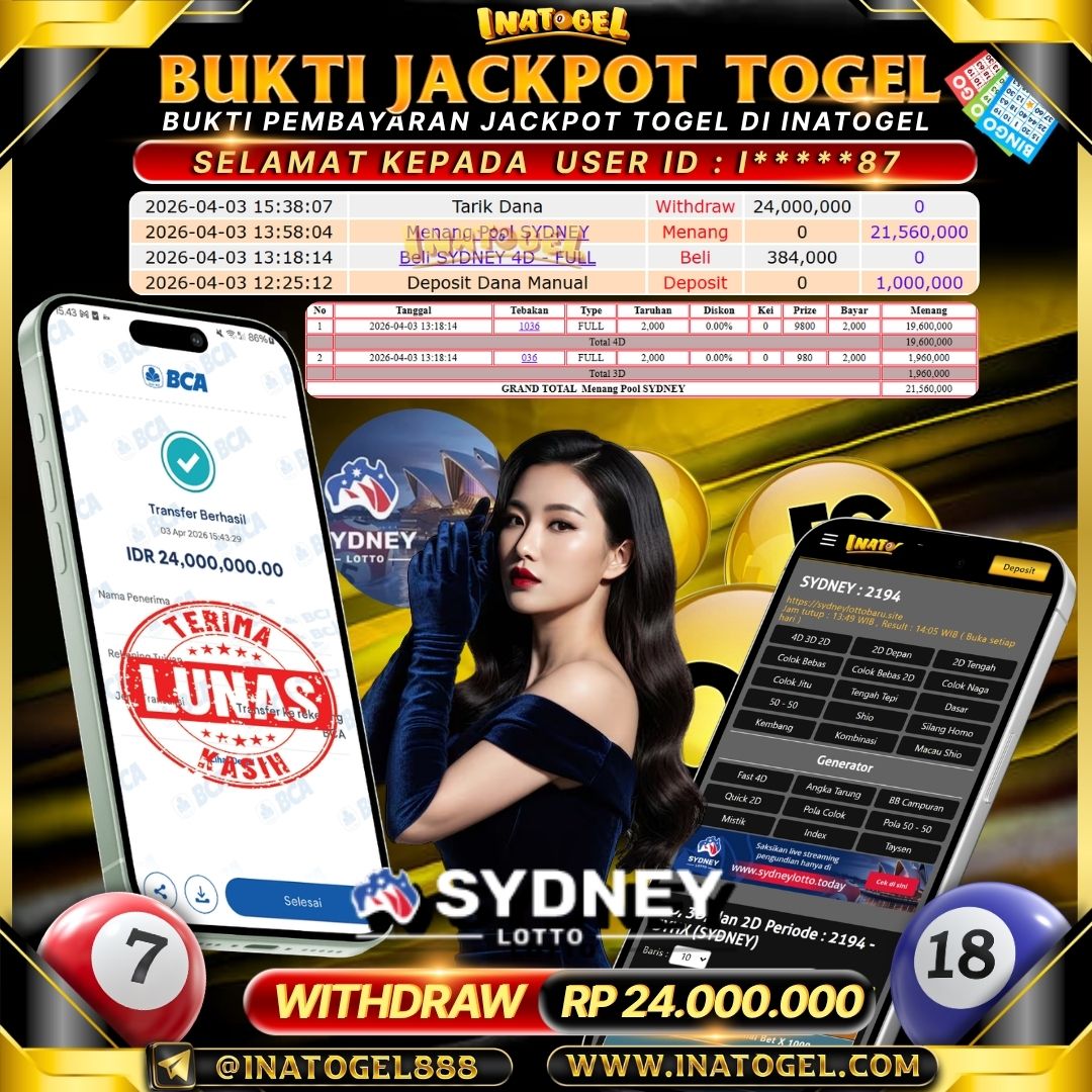Inatogel Jackpot Togel Sydney Lotto Rp 21,500,000
