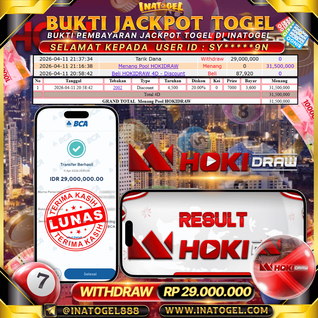 Inatogel Jackpot Togel Sydney Lotto Rp 29,000,000