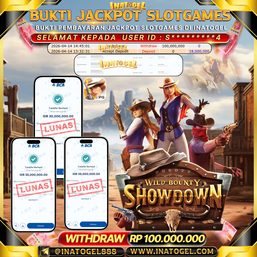 Selamat kepada User Id P***A telah berhasil mendapatkan kemenangan jackpot pada permainan Slot Games Wild Bounty Showdown sebesar Rp 100,000,000- . Inatogel situs terpercaya sejak dulu hingga saat ini , Untuk kemenangan berapapun pasti akan kami bayarkan . Jangan ragu bermain di Ina Togel . Kami pihak Inatogel Menyampaikan terima kasih kepada seluruh member Ina Togel yang telah Percaya dan setia Bersama kami bermain di Inatogel saat ini.