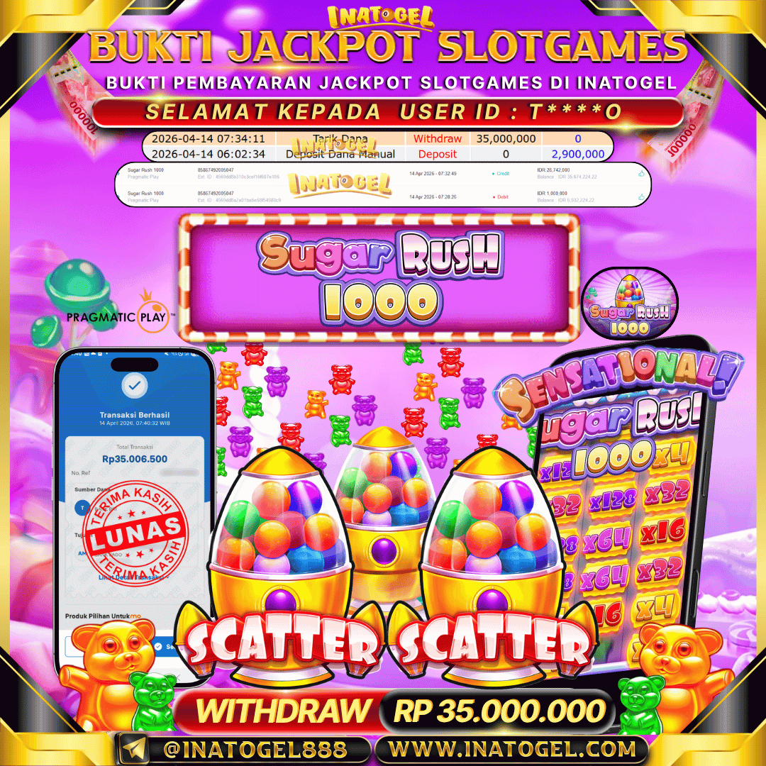 Selamat kepada User Id K******90 telah berhasil mendapatkan kemenangan jackpot pada permainan Live Game Sweet Bonanza Candy land sebesar Rp 178,000,000- . Inatogel situs terpercaya sejak dulu hingga saat ini , Untuk kemenangan berapapun pasti akan kami bayarkan . Jangan ragu bermain di Ina Togel . Kami pihak Inatogel Menyampaikan terima kasih kepada seluruh member Ina Togel yang telah Percaya dan setia Bersama kami bermain di Inatogel saat ini.