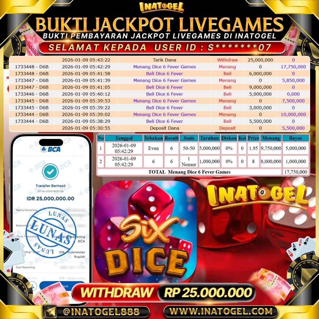 Inatogel Jackpot Live Games Dice 6 Fever games Rp 25,000,000