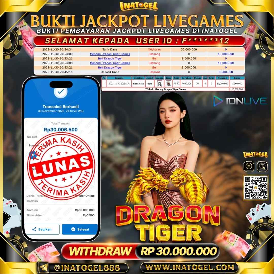 Inatogel Jackpot Live Games Dragon Tiger Rp30,000,000