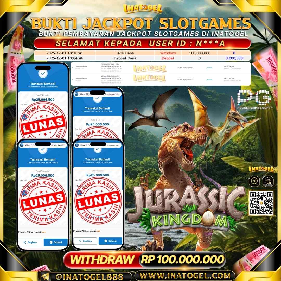 Inatogel Jackpot SlotGame Jurassic Kingdom Rp100,000,000