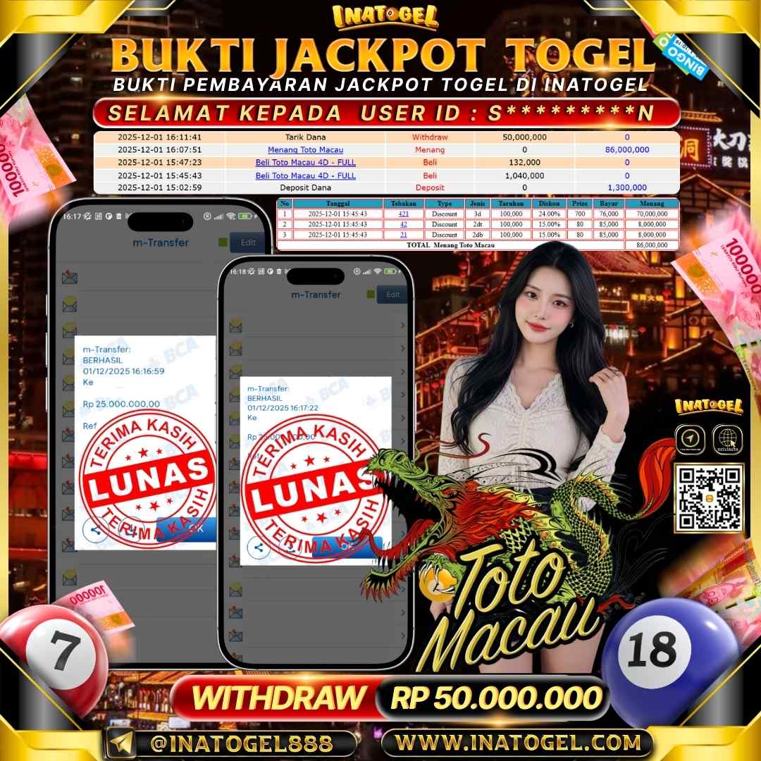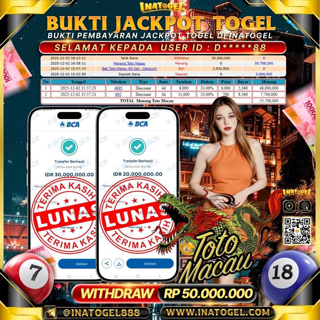 Inatogel Jackpot Togel TOTO MACAU Rp50,000,000