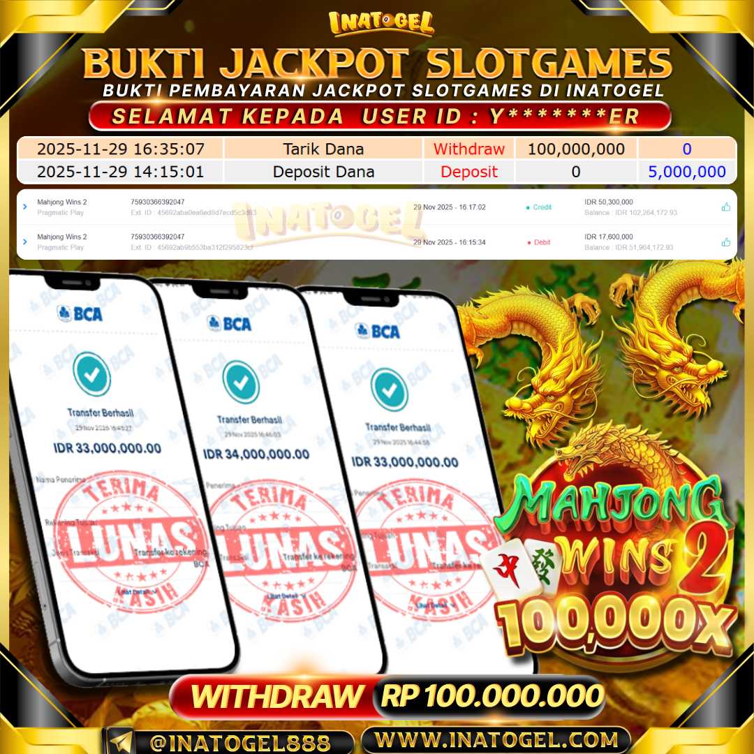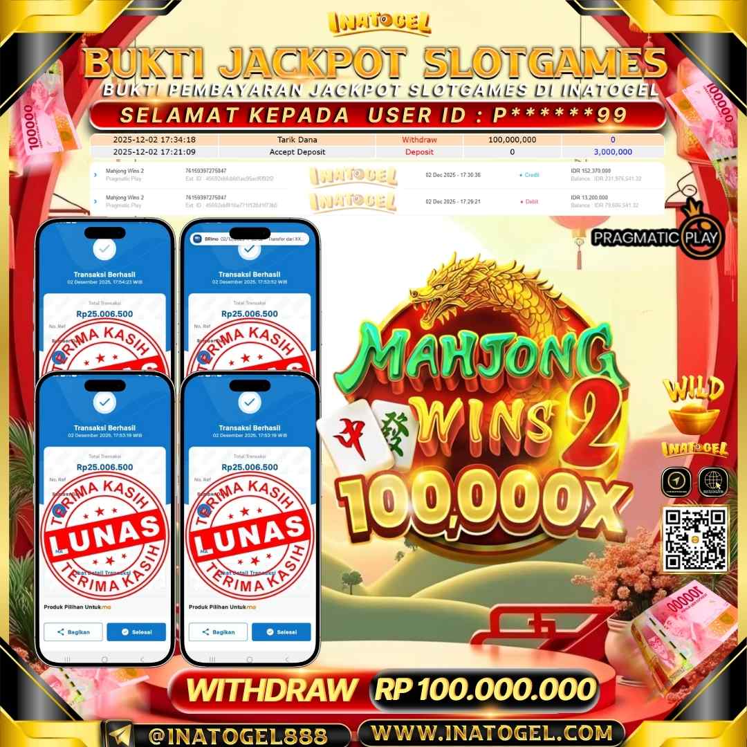 Inatogel Jackpot SlotGame Mahjong Wins 2 Rp100,000,000