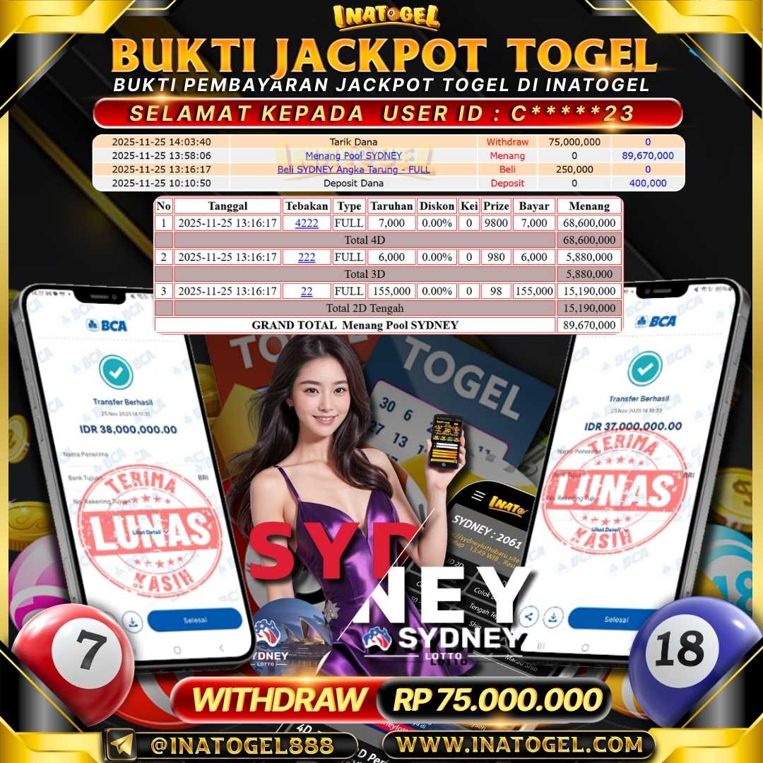 Inatogel Jackpot Togel SYDNEYLOTTO Rp75,000,000