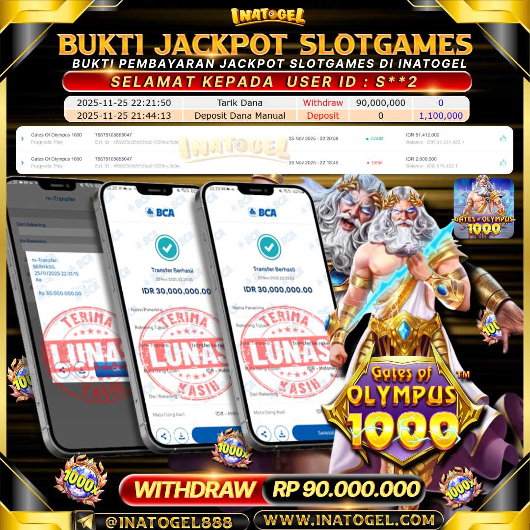Inatogel Jackpot SlotGame Gates Of Olympus 1000 Rp90,000,000
