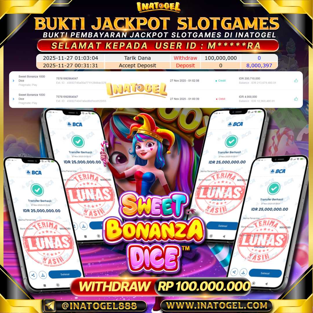 Inatogel Jackpot SlotGame Sweet Bonanza 1000 Dice Rp100,000,000
