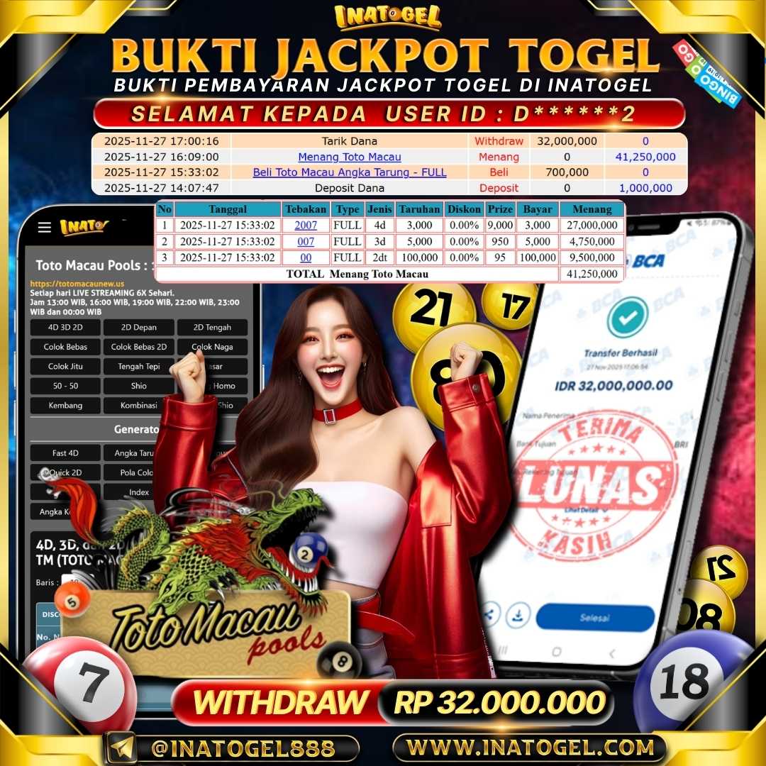 Inatogel Jackpot Togel Totomacau Rp32,000,000
