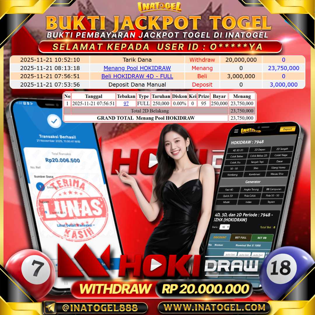 Inatogel Jackpot Togel Pool HOKIDRAW Rp20,000,000