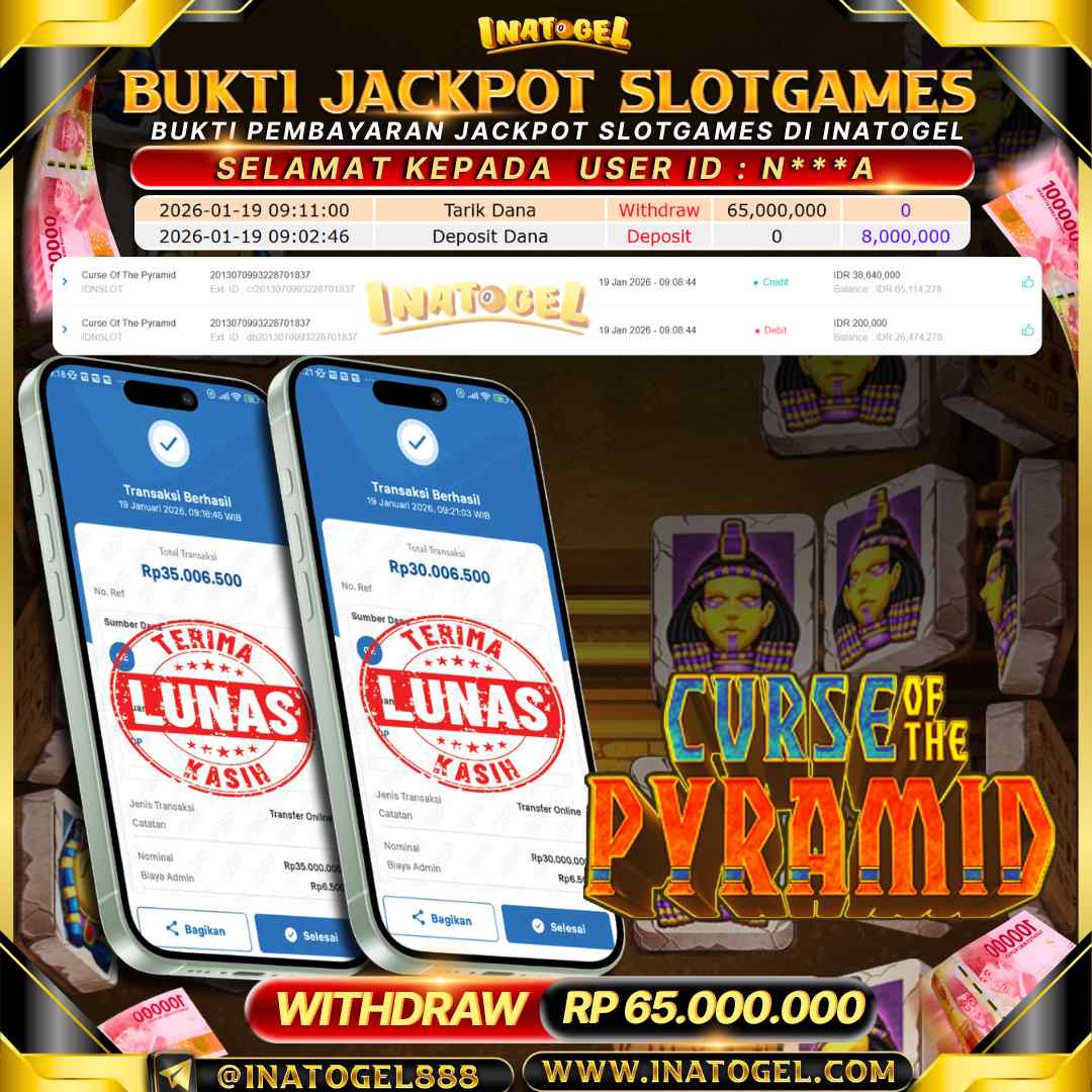 Selamat kepada UserId N***A telah berhasil mendapatkan kemenangan jackpot pada permainan Slot Game Curse Of The Pyramid Inatogel sebesar Rp65,000,000,- . Inatogel situs terpercaya sejak dulu hingga saat ini , Untuk kemenangan berapapun pasti akan kami bayarkan . Jangan ragu bermain di Ina Togel . Kami pihak Inatogel Menyampaikan terima kasih kepada seluruh member Ina Togel yang telah Percaya dan setia Bersama kami bermain di Inatogel hingga saat Ini