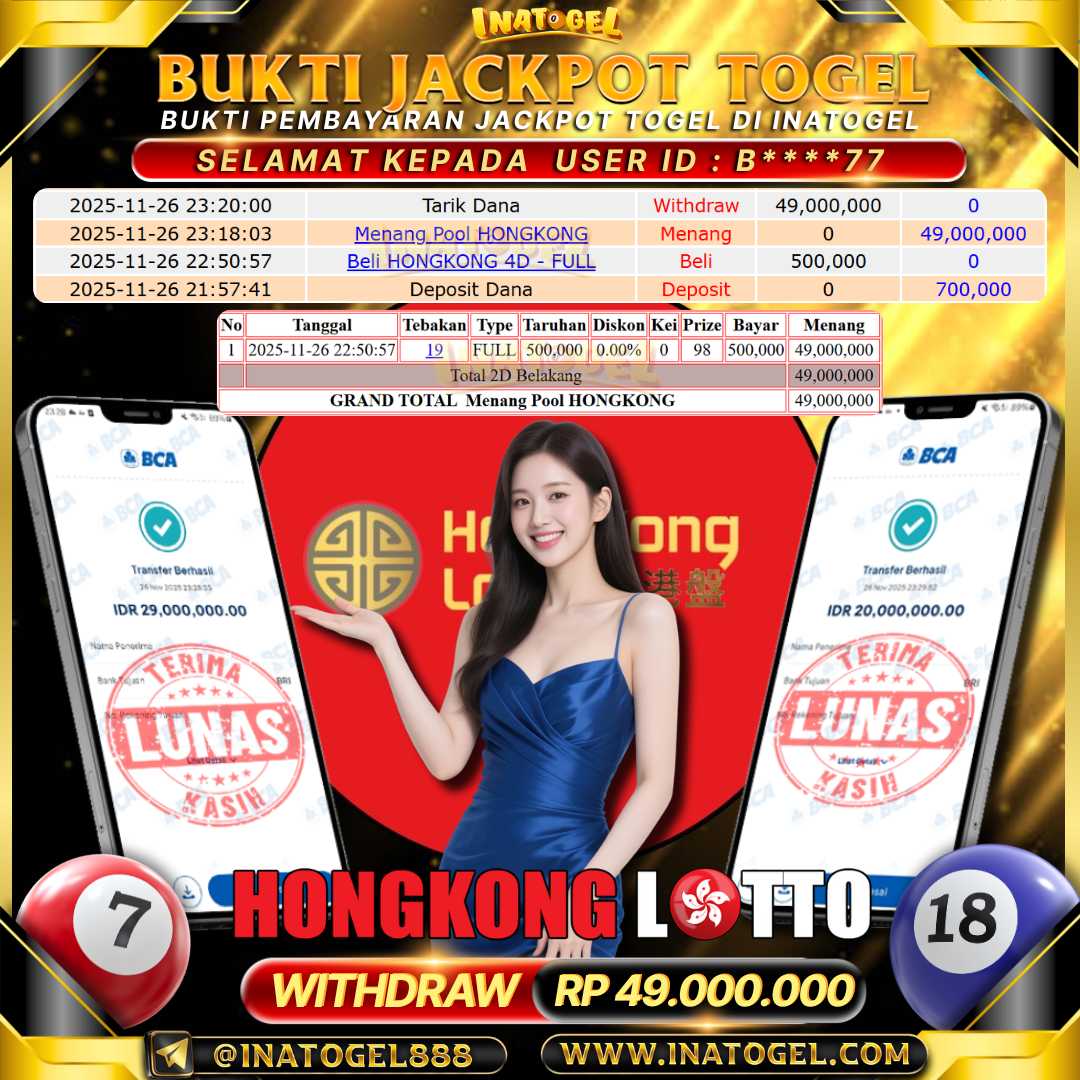Inatogel Jackpot Togel HONGKONGLOTTO Rp49,000,000