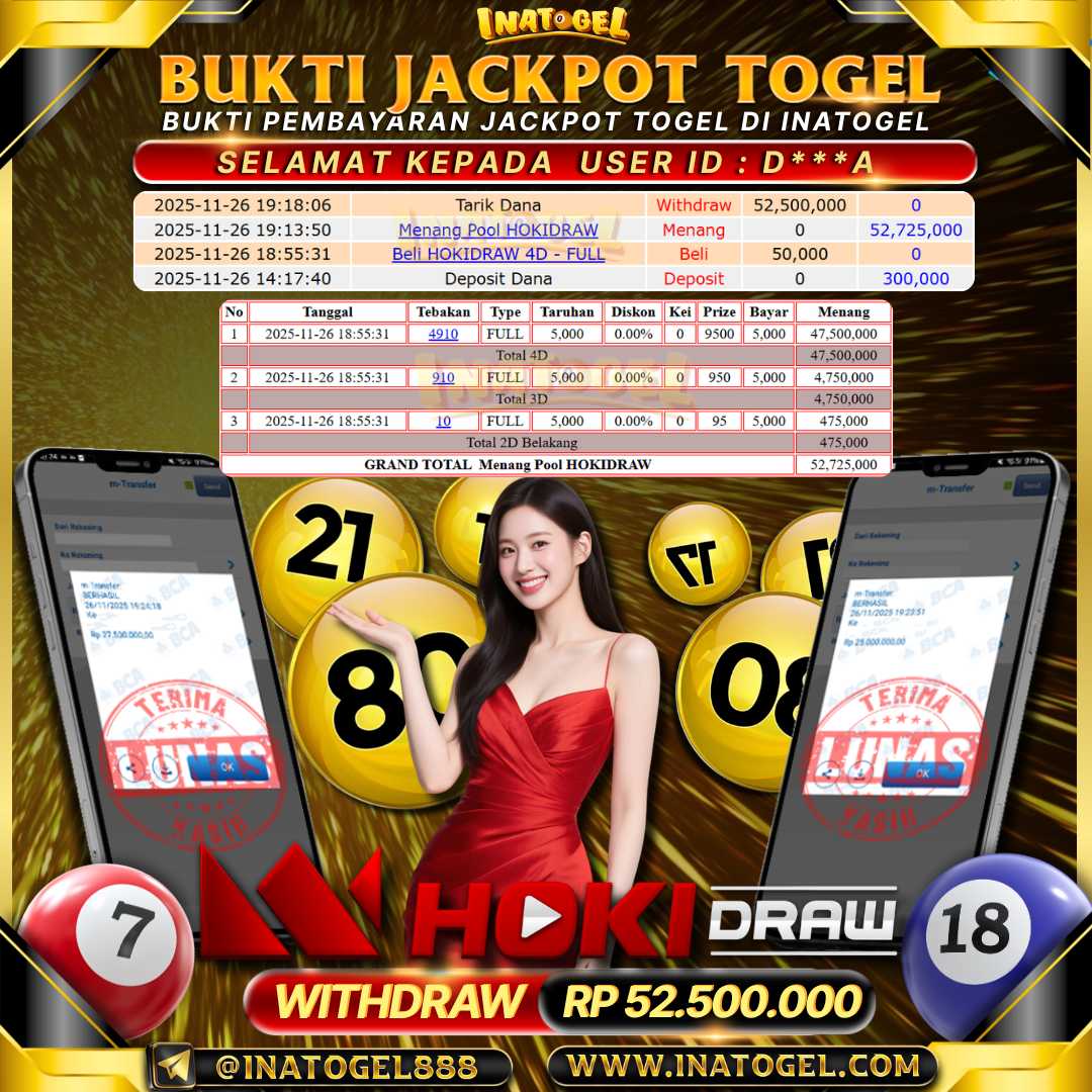 Inatogel Jackpot Togel HOKIDRAW Rp52,500,000
