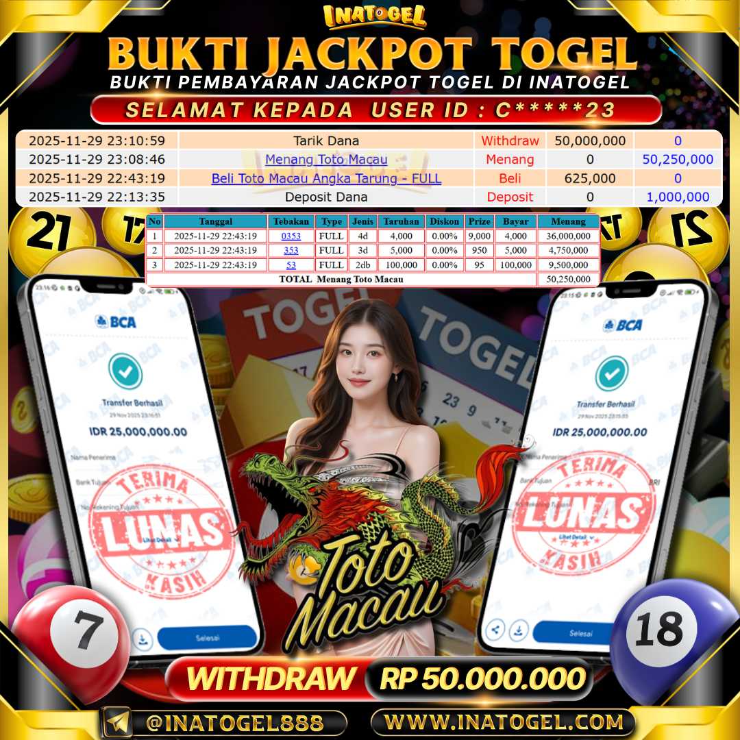 Inatogel Jackpot Togel Totomacau Rp50,000,000
