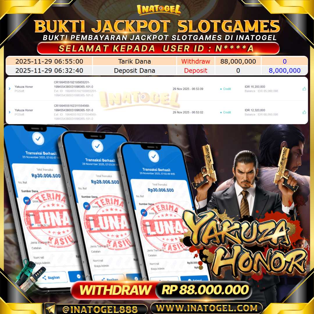 Inatogel Jackpot SlotGame Yakuza Honor Rp88,000,000