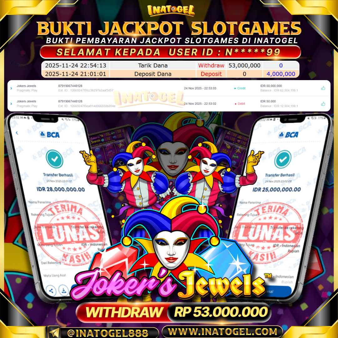 Inatogel Jackpot SlotGame Jokers Jewels Rp53,000,000
