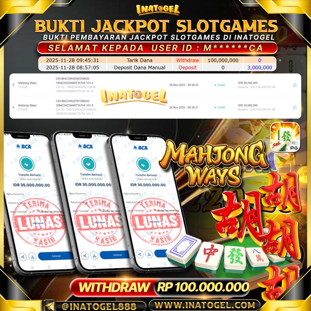 Inatogel Jackpot SlotGame Mahjong Ways Rp100,000,000
