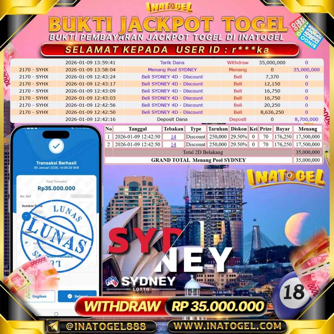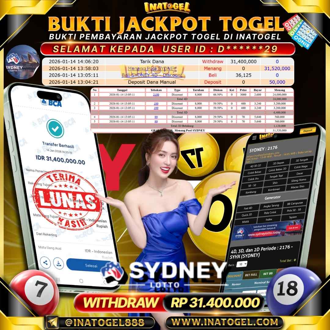 Inatogel Jackpot Togel SYDNEYLOTTO Rp31,400,000