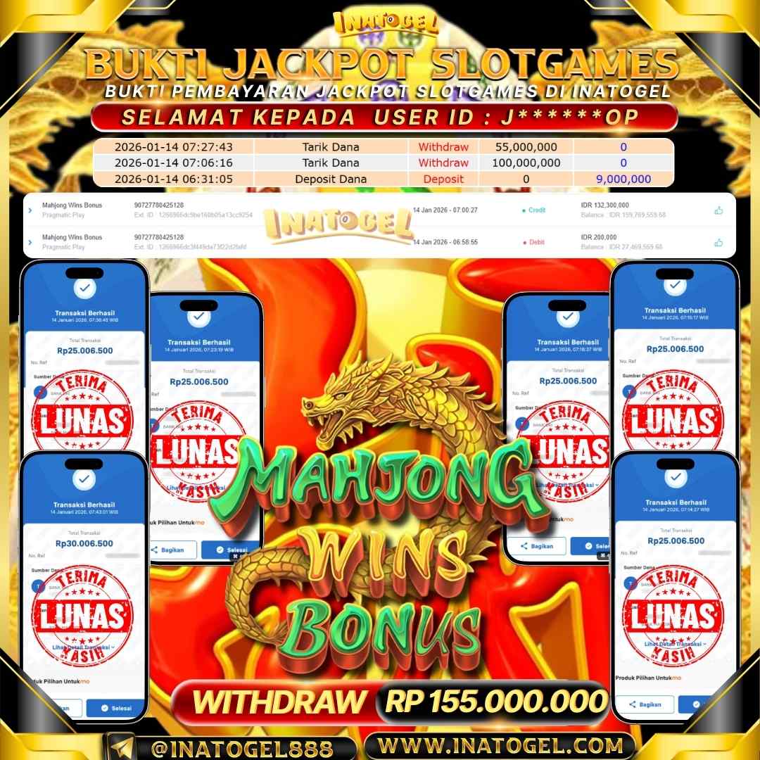 Inatogel Jackpot SlotGames Mahjong Wins Bonus Rp155,000,000