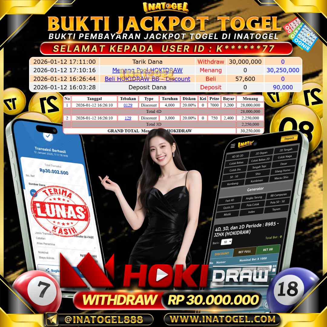 Inatogel Jackpot Togel HOKIDRAW Rp30,000,000