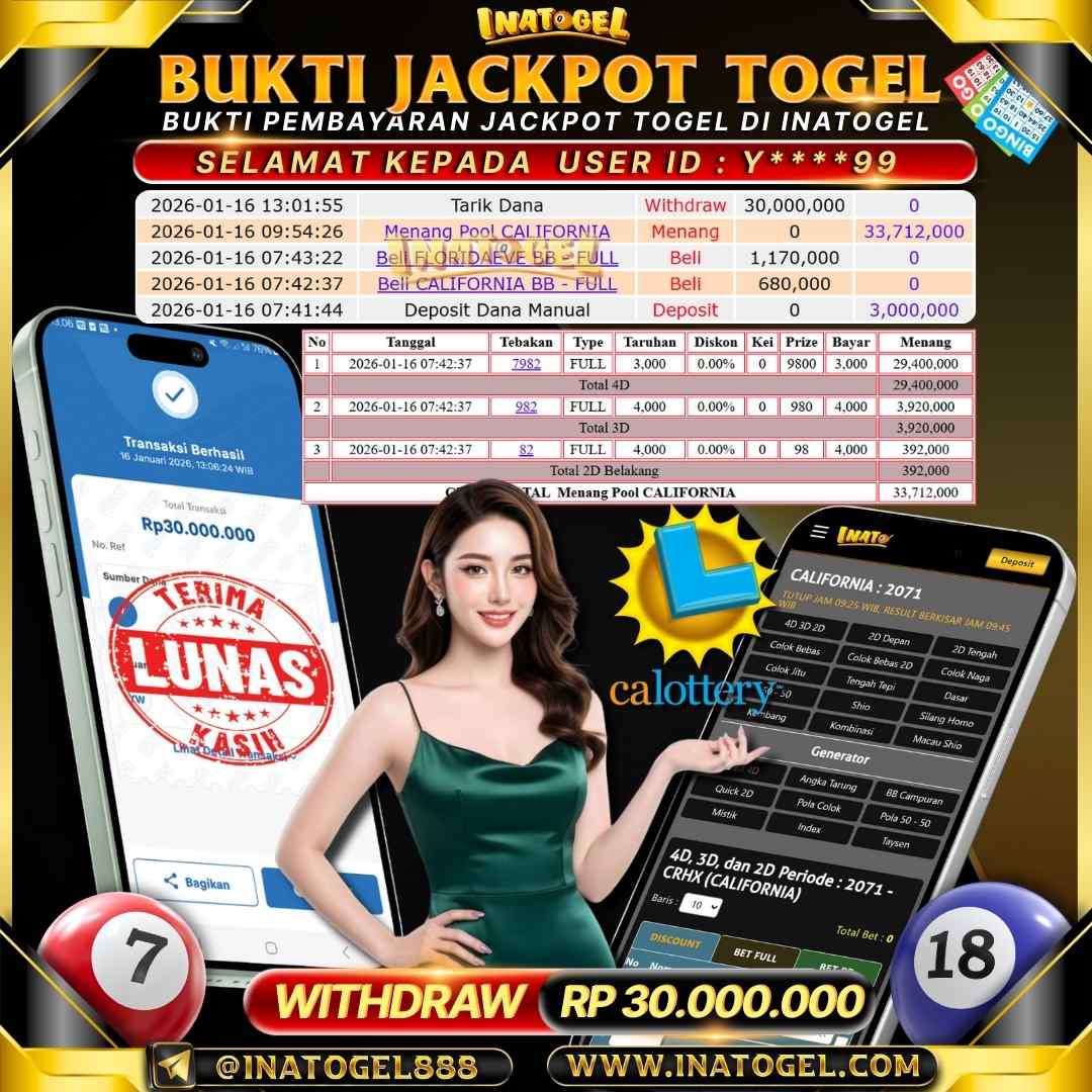 Inatogel Jackpot Togel Pool CALIFORNIA Rp30,000,000
