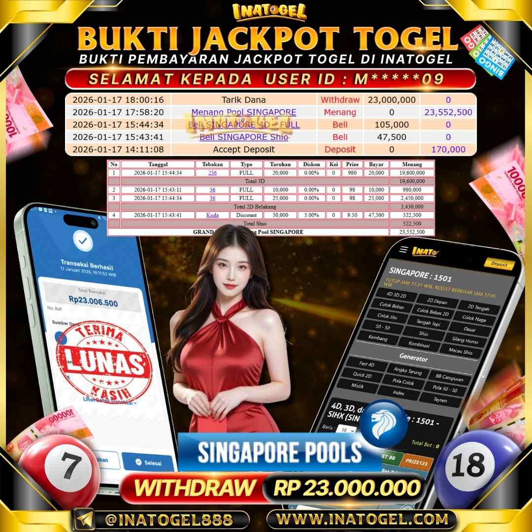 Inatogel Jackpot Togel Pool SINGAPORE Rp23,000,000
