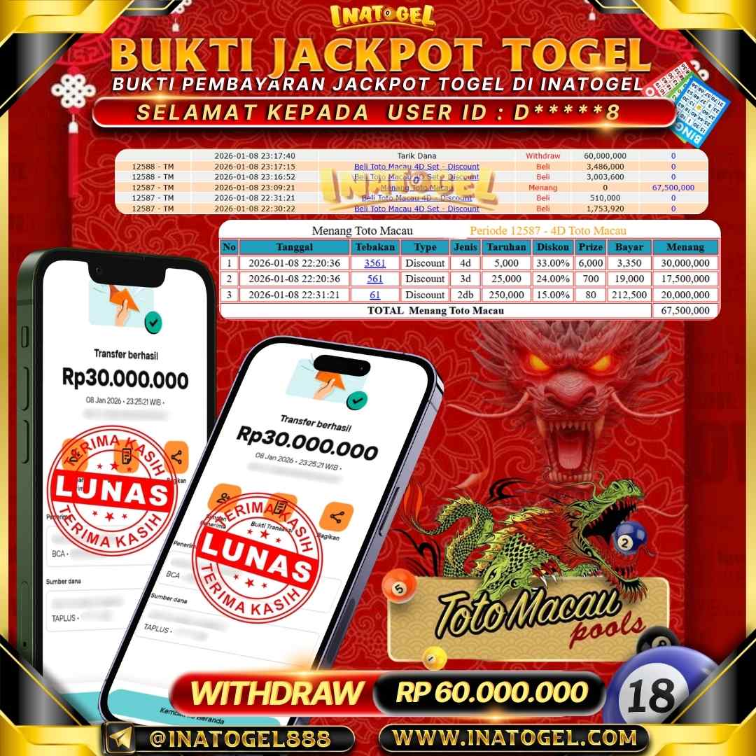 Inatogel Jackpot Togel Toto Macau 4D Rp60,000,000