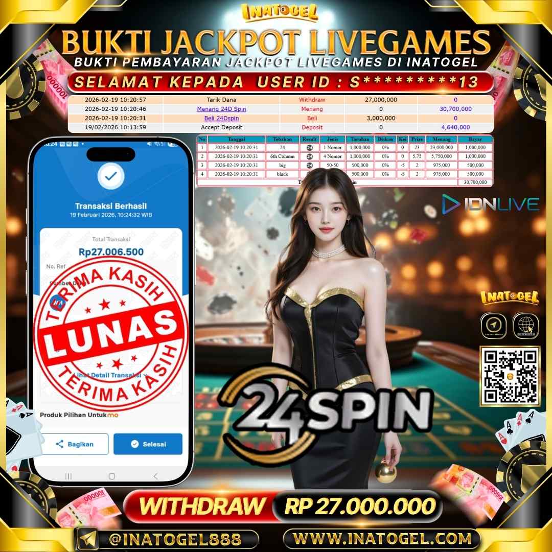 Inatogel Jackpot Live Game 24D Spin Rp27,000,000