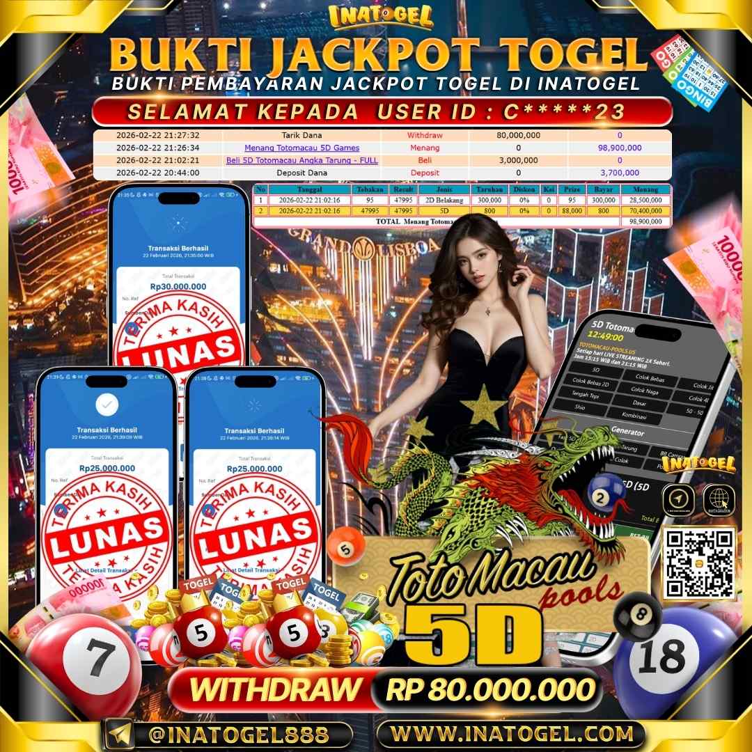 Inatogel Jackpot Togel Toto Macau 5D Rp 80,000,000