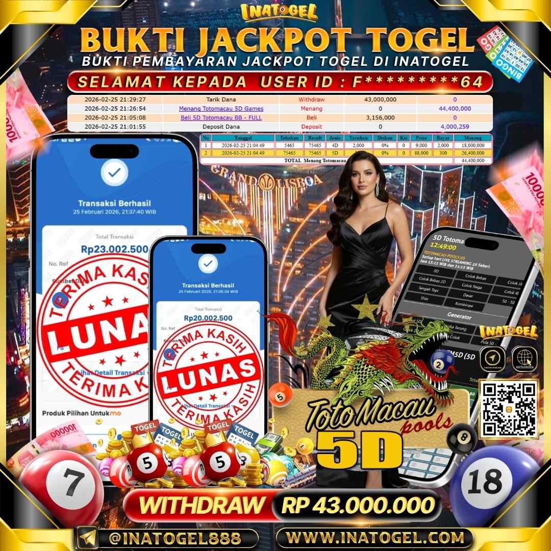 Inatogel Jackpot Togel Toto Macau 5D Rp 43,000,000