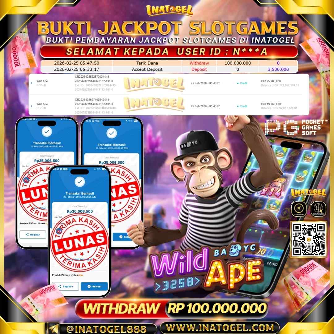 Inatogel Jackpot Slot Games Wild Ape Rp 100,000,000