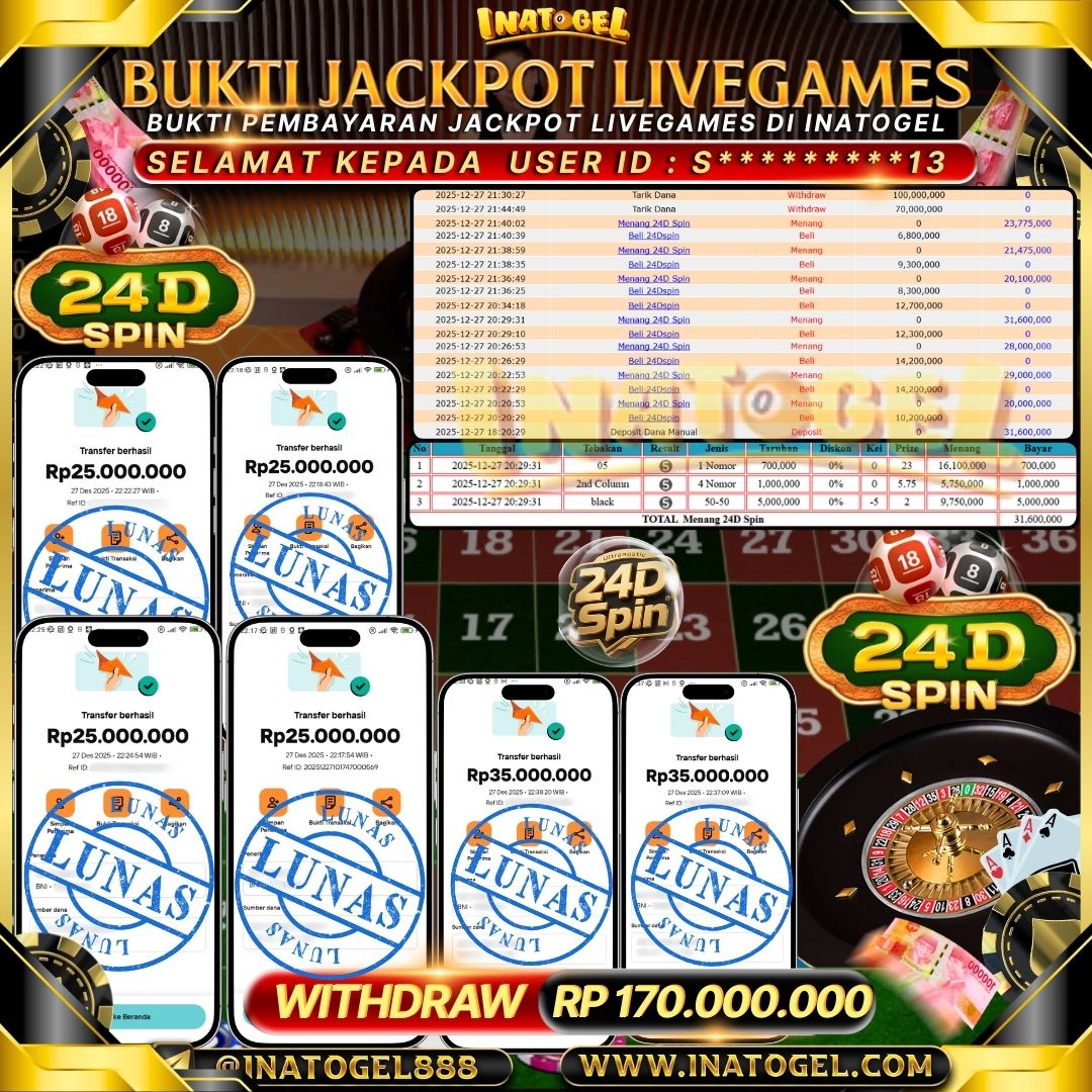 Inatogel Jackpot LiveGames 24D Spin Rp170,000,000