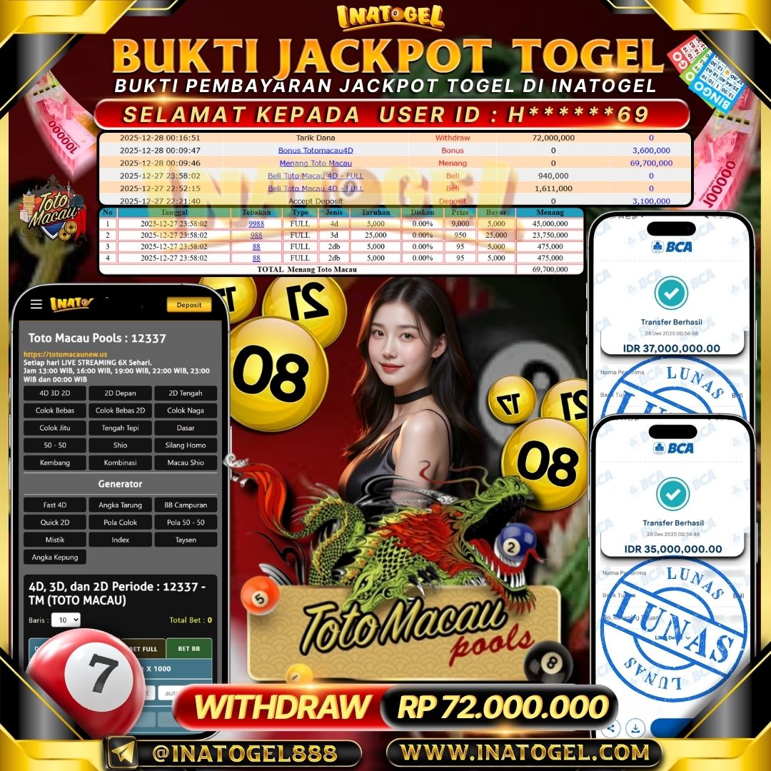 Inatogel Jackpot Togel Toto Macau Pools Rp72,000,000