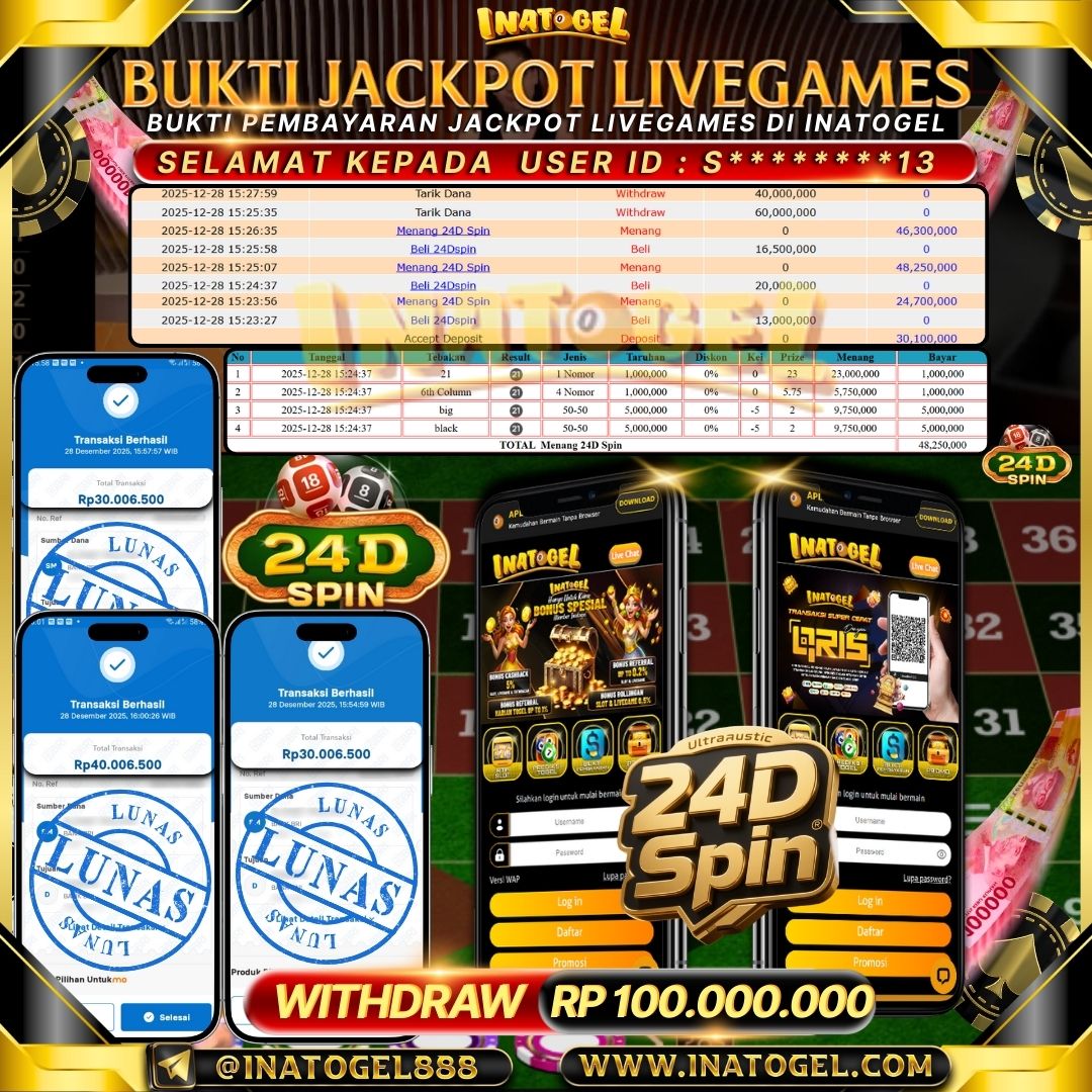Inatogel Jackpot LiveGames 24D Spin Rp100,000,000