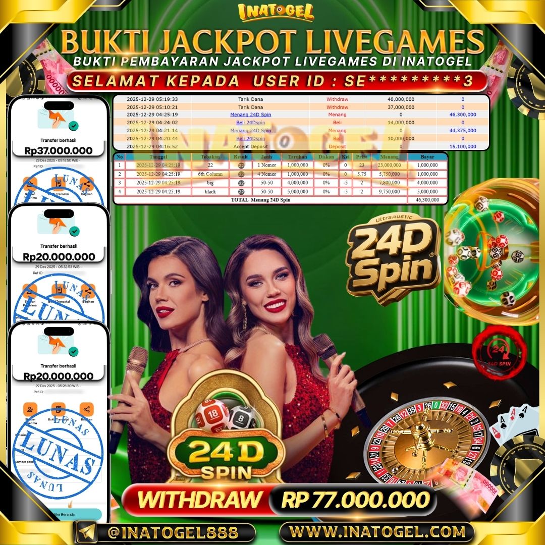 Inatogel Jackpot LiveGames 24D Spin Rp77,000,000
