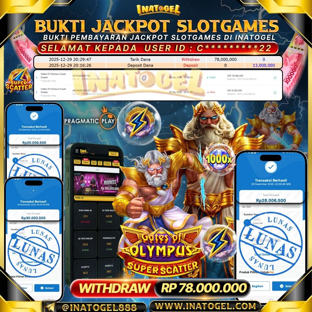 Inatogel Jackpot SlotGames Gates Of Olympus Super Scatter Rp78,000,000