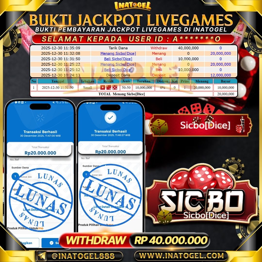 Inatogel Jackpot LiveGames Mega Sicbo Indonesia Rp100,000,000